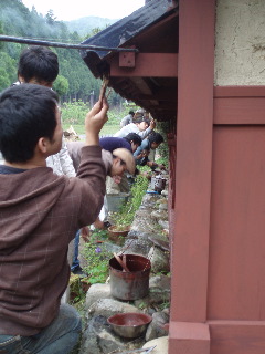 5月20日、京北の塀チームを増員して、ベンガラ塗りに出発。